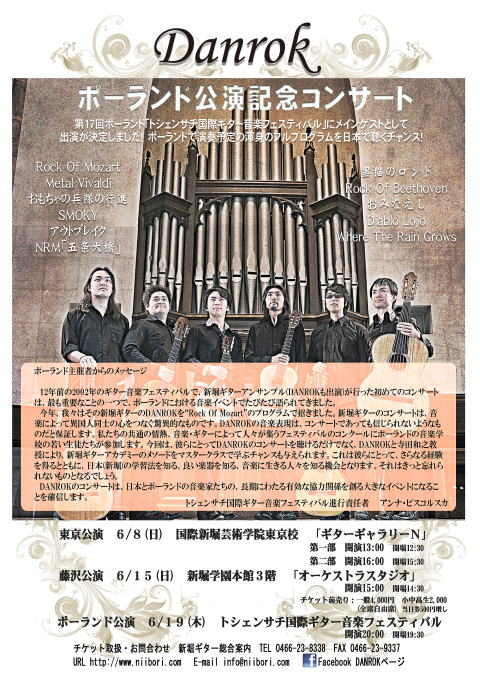 ポーランドTrzesacz(トシェンサチ)第17回国際ギターフェスティバルのメインイベントコンサートの特別ゲストとして出演。過去にNEが出演し大成功を収めている。 |